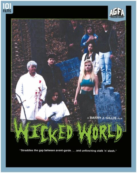 In 1989, filmmaker Barry J. Gillis and friends renewed the world’s faith in Canada with the horror brainbomb known as THINGS. But that was only the beginning. Virtually unseen until now, WICKED WORLD is not only Gillis’ 1991 follow-up to THINGS — it’s also a new form of genre anarchy. Grant Ekland (Gillis) is a cop who is haunted by the death of his girlfriend at the hands of a psychotic slasher named Harold. When Harold is released from an asylum, there’s only one option for Ekland: revenge! Filled with metal riffage, gnarly ultra-violence, and experimental techniques, WICKED WORLD feels like what would happen if Salvador Dali injected acid directly into his brain while staring at a Cannibal Corpse LP cover. This is a highly personal treatise on the toxicity of society from one of the most singular filmmakers in trash-horror history. If you survive WICKED WORLD, you’ll never forget it.