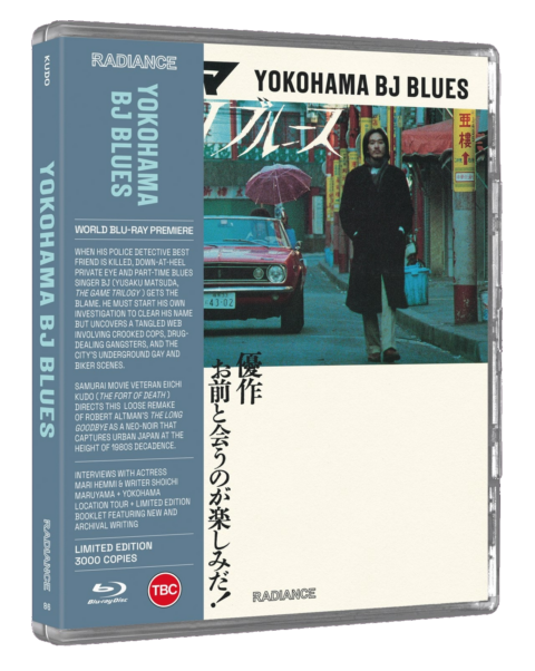 When his police detective best friend is killed, down-at-heel private eye and part-time blues singer BJ (Yusaku Matsuda, The Game Trilogy) gets the blame. He must start his own investigation to clear his name, but what he uncovers is a tangled web involving crooked cops, drug-dealing gangsters, the city’s underground gay and biker scenes, and even his own past. A loose remake of Robert Altman’s The Long Goodbye that also draws from Visconti’s Death in Venice, this was Matsuda’s break with his action hero image. Samurai movie veteran Eiichi Kudo (The Fort of Death) relishes his chance at directing a neo-noir that captures urban Japan at the height of 1980s decadence.
